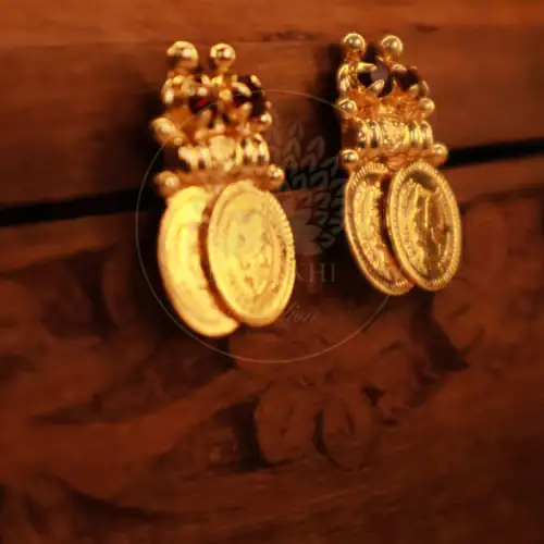 Premium South Indian traditional jewelry: the stunning Classic Adukku Kasu Stud Earrings | Kerala Coin Design Jewelry is perfect for weddings and festivals.