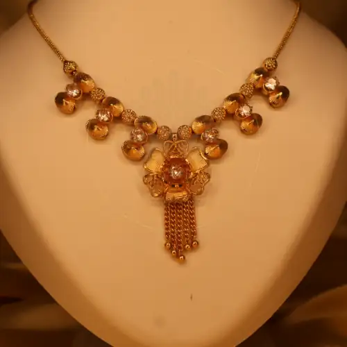First of all, expert artisans carefully sculpt every single motif on our premium jewelry. As a result, you receive a timeless treasure. We craft this authentic product with excellent skin-friendly materials. Moreover, the high-quality gold plating ensures the intricate details sparkle brightly under natural light. Furthermore, you can easily explore our complete collection to pair it perfectly with charming traditional earrings. Ultimately, this creates a royal outfit that honors your traditions.