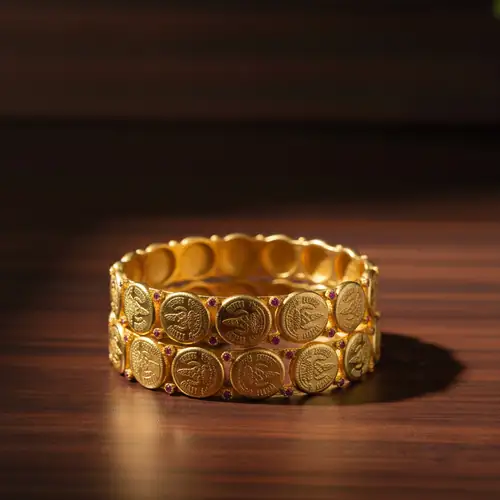 There are countless compelling reasons to eagerly add the Lakshmi Bangle (single) to your prized collection today. First and foremost, its styling versatility is simply unmatched. Whether you are actively attending a grand traditional wedding, celebrating a joyous festive occasion, or simply wishing to subtly add a touch of traditional charm to your everyday casual attire, these exquisite bangle is always the perfect flawless choice. Moreover, they are remarkably comfortable to wear for extended periods, largely thanks to their ultra-smooth inner finish and intelligently balanced weight distribution. View our full traditional Kerala jewelry collection for more matching items.