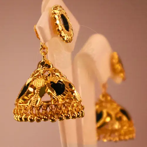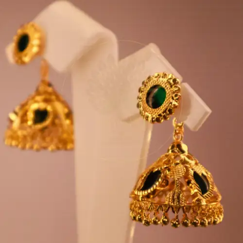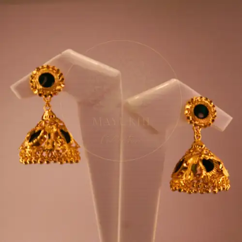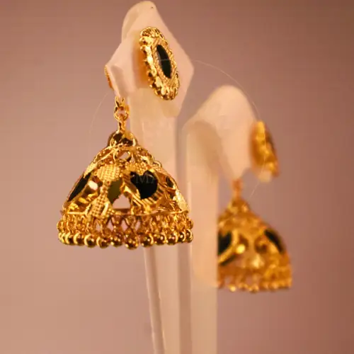 Throughout incredibly rich Indian history, the mango motif confidently symbolizes abundant life, deep love, and extreme fertility. Specifically, the Manga Motif Jhumka Earrings proudly integrate this powerful symbol securely onto the stud portion, gently suspending the massive bell beneath it. Consequently, you practically radiate intensely positive energy when passionately wearing them. Indeed, the intricate stonework aggressively catches every single ray of ambient light.