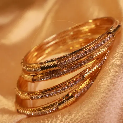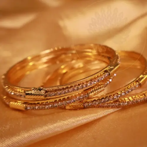 Every single intricate detail of the Vaidurya Bangle has been meticulously and patiently crafted to absolute perfection. Our expert artisans have poured their entire heart and soul into creating a phenomenal design that seamlessly blends traditional historical motifs with breathtaking contemporary elegance. The heavy-gauge premium base metal guarantees incredible durability, while the brilliant outer finishing provides an undeniable glow that radiates pure luxury. Indeed, when you gracefully wear this exquisite piece, you are proudly showcasing a magnificent piece of art that has been refined over many generations. Furthermore, our product is heavily plated to offer a premium golden luster that beautifully mimics the look of pure gold without compromising on world-class quality or affordability.
