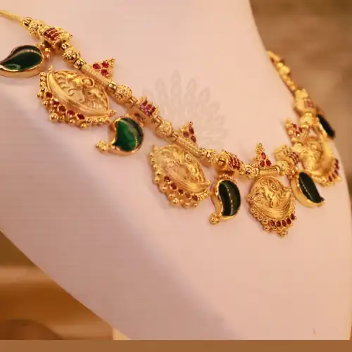 First of all, expert artisans carefully sculpt every single motif on our premium jewelry. As a result, you receive a timeless treasure. We craft this authentic product with excellent skin-friendly materials. Moreover, the high-quality gold plating ensures the intricate details sparkle brightly under natural light. Furthermore, you can easily explore our complete collection to pair it perfectly with charming traditional earrings. Ultimately, this creates a royal outfit that honors your traditions.